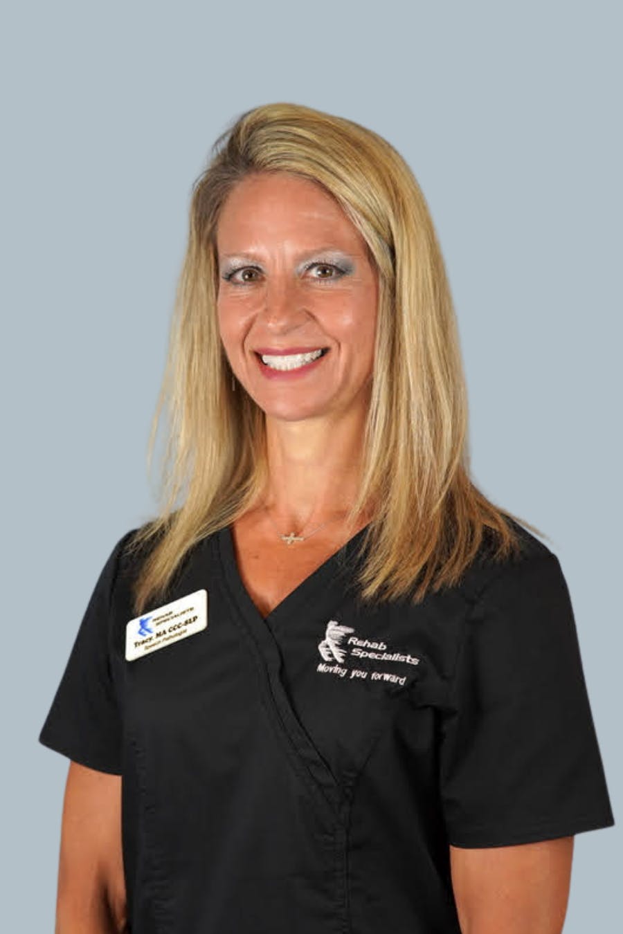 Tracy is a highly experienced speech threapist and has worked with a diverse population including pediatrics, young adults, and geriatric clients, and has treated many challenging diagnoses in her career. She has worked in rehabilitation hospital settings, private clinics, and schools. Tracy has completed training and received certification in Vital Stim Therapy for dysphagia as well as LSVT LOUD for Parkinson's Disease. She has performed videofluoroscopies to determine safest oral diets and appropriate dysphagia treatments. Tracy enjoys staff and family education on various topics that improve communication, cognition and lifestyle.